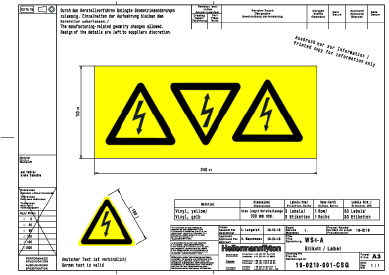 | Kurzbeschreibung | Etikett Warnzeichen elektrischer Spannung 100.0 mm gelb mit schwarzem Aufdruck |